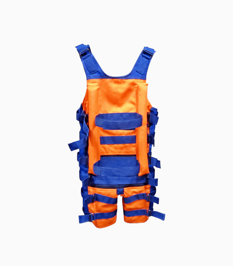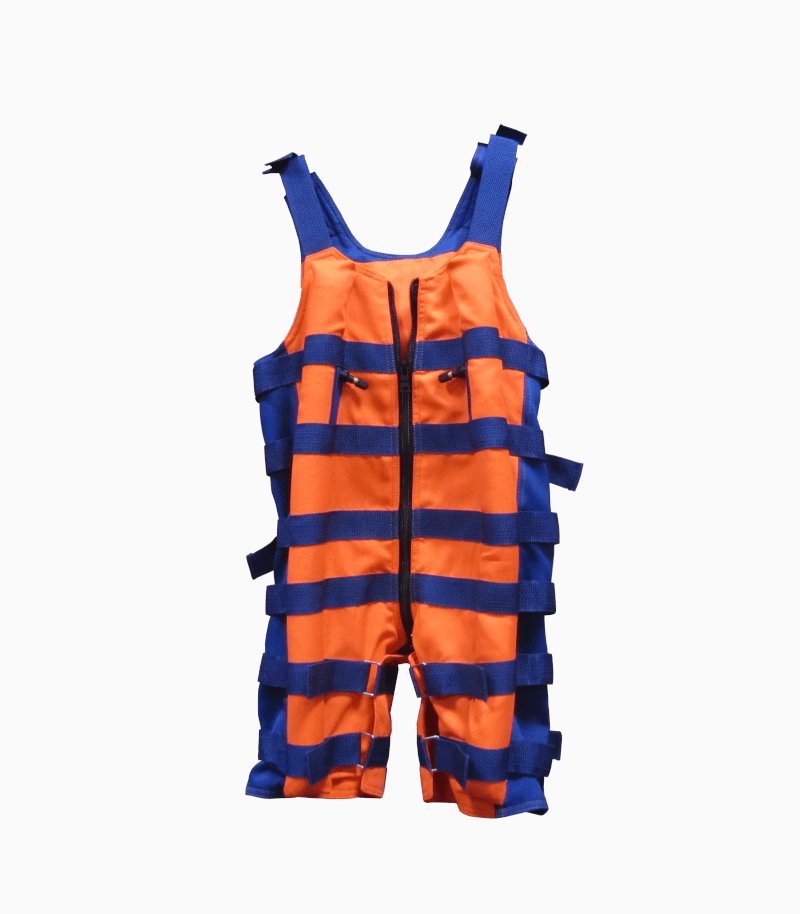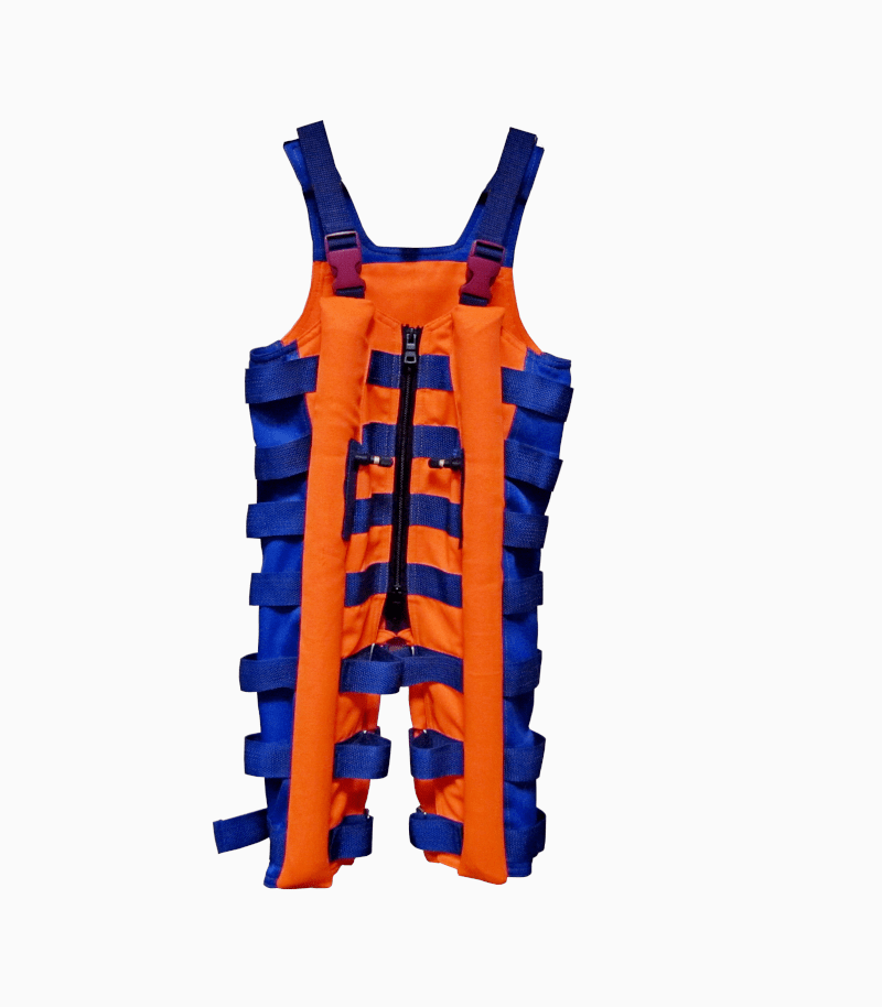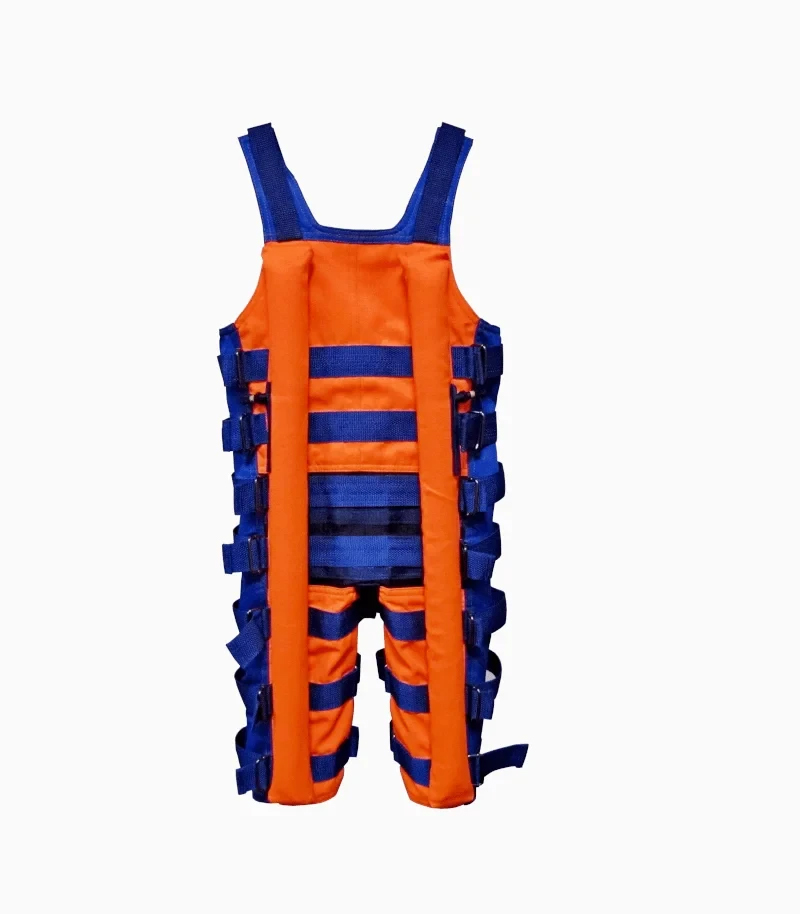 Пневмокостюм используется в целях реабилитации детей при позиционной терапии. Мягкие воздушные боковые упоры вдоль всего позвоночника комфортны для ребенка, регулируются по жесткости за счет воздушной массы и безболезненно корректируют положение торса, тазобедренного пояса, при этом давая возможность удерживать голову в нужном положении.