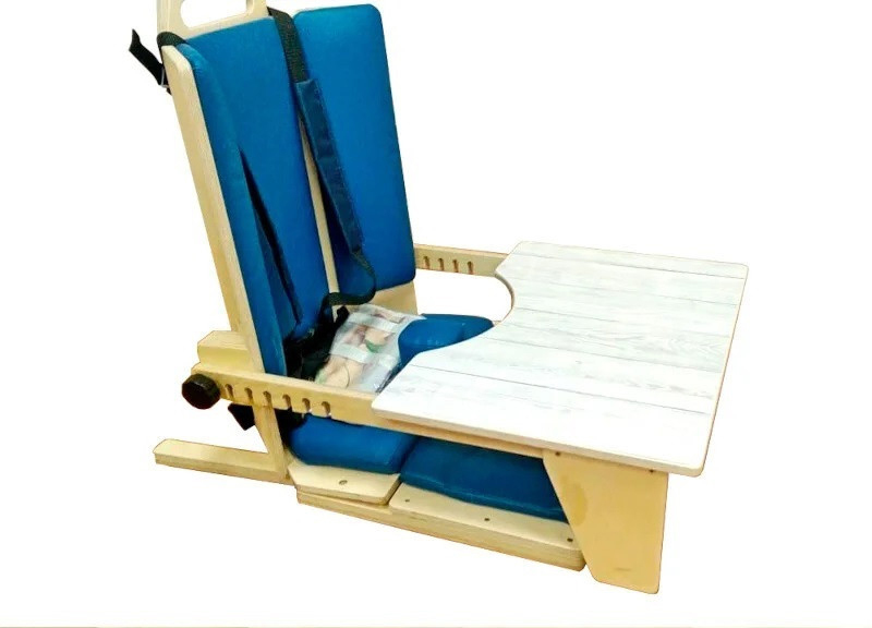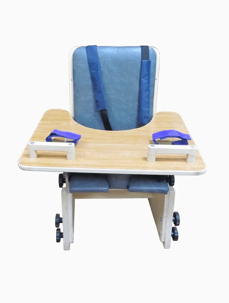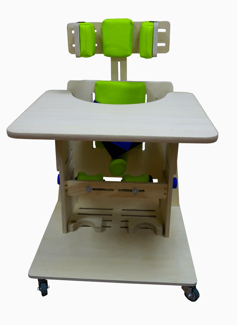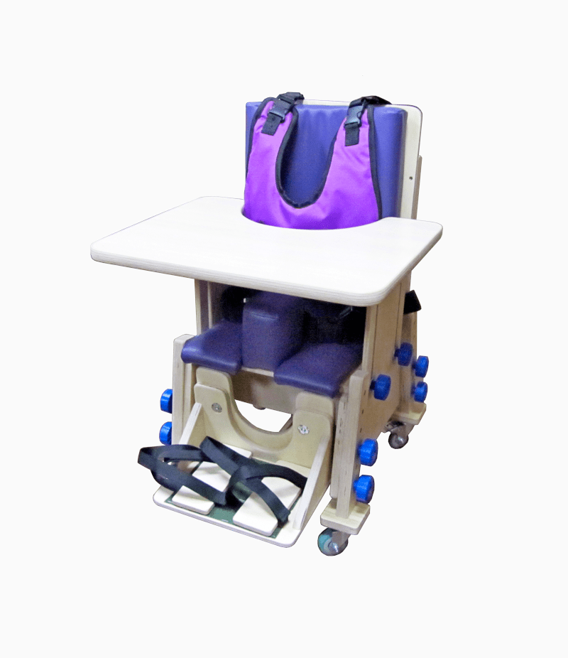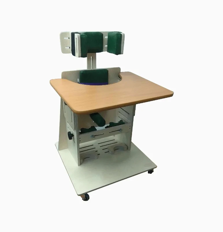 К сидению может прилагаться столик на липучках, прикрепляемый к подлокотникам. В такой модификации на подлокотниках крепится липучка «петля». Столик может быть выдвижной. При гиперкинезах у ребенка устанавливаются дополнительные приспособления на столешнице, например вертикальные или горизонтальные ручки, прорези для фиксации одной руки, а также дополнительные петли к подножке для более жесткой фиксации голеностопных суставов.