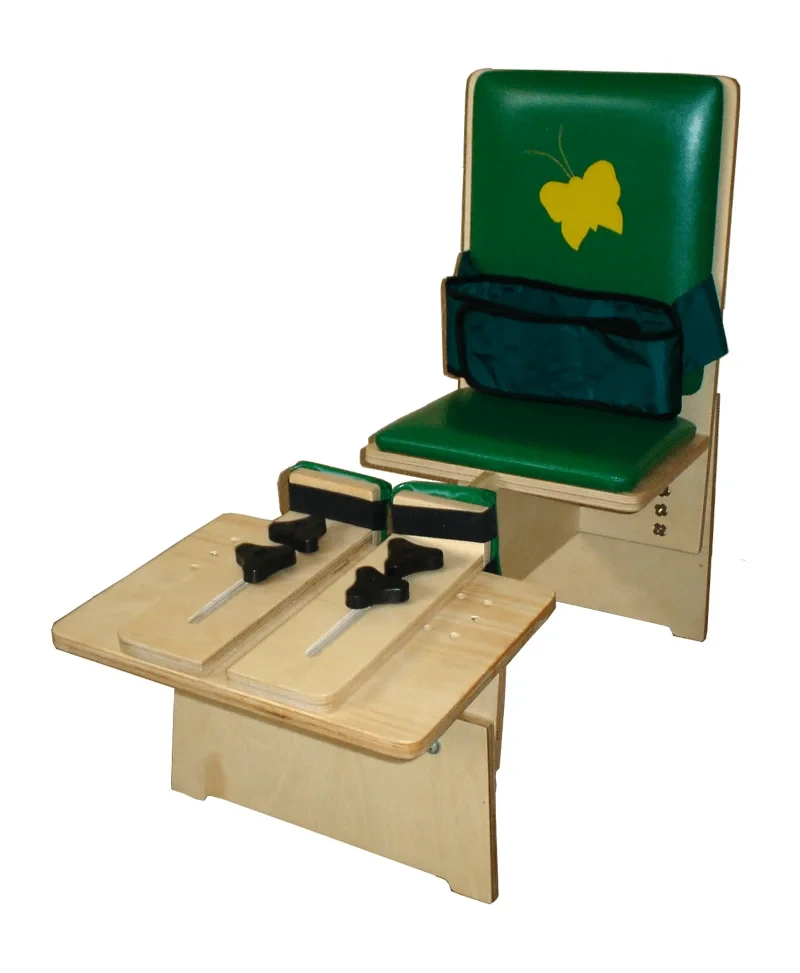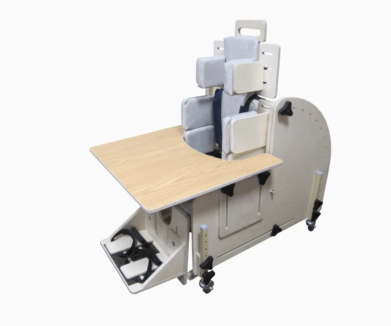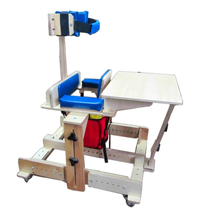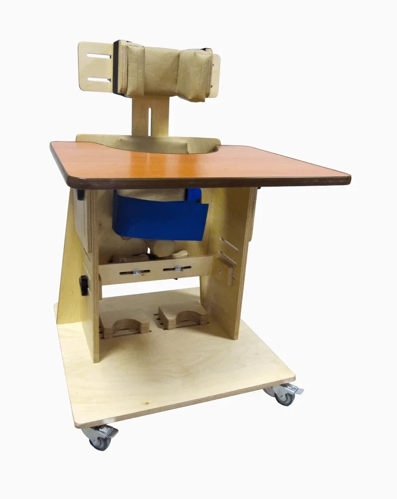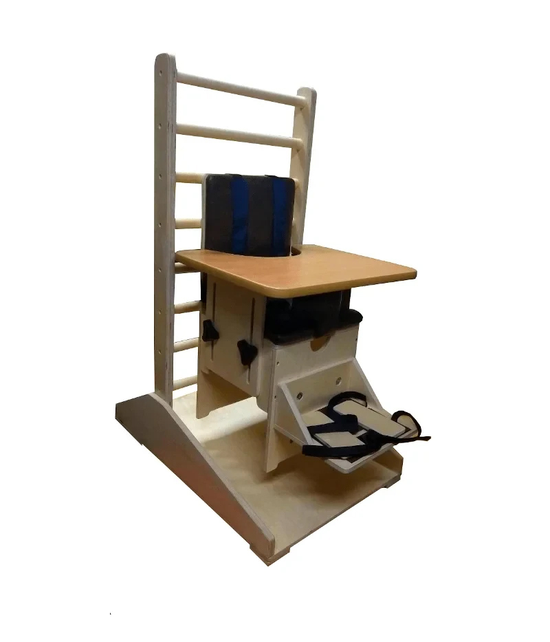 К сидению может прилагаться столик на липучках, прикрепляемый к подлокотникам. В такой модификации на подлокотниках крепится липучка «петля». Столик может быть выдвижной. При гиперкинезах у ребенка устанавливаются дополнительные приспособления на столешнице, например вертикальные или горизонтальные ручки, прорези для фиксации одной руки, а также дополнительные петли к подножке для более жесткой фиксации голеностопных суставов.