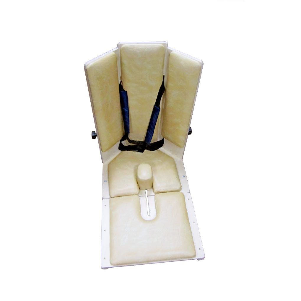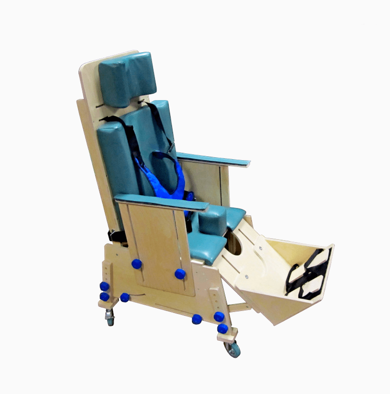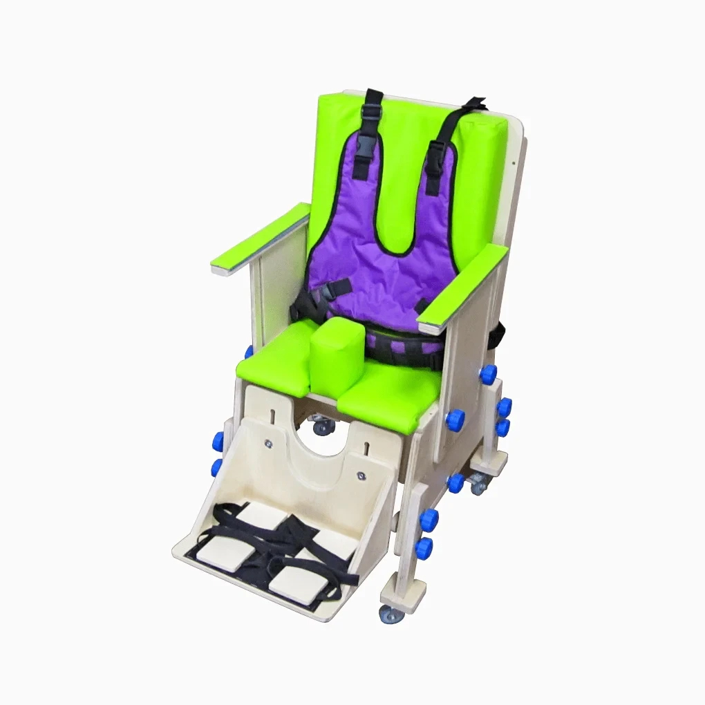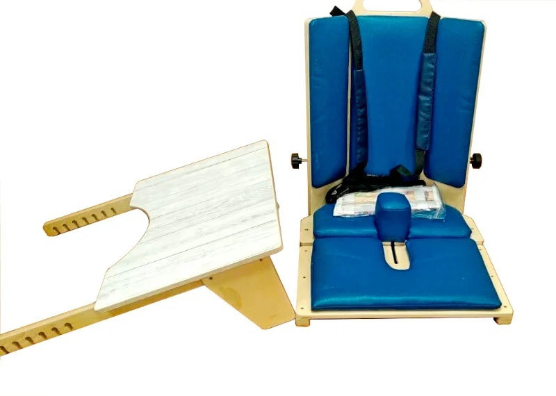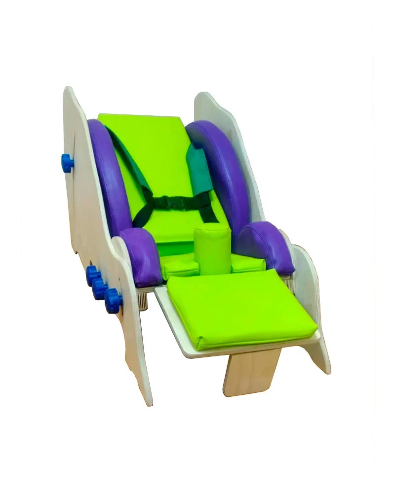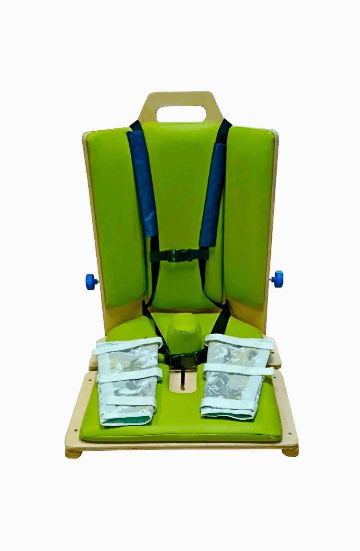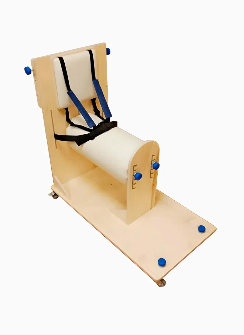 Описание: Сидение используется в учебных и домашних условиях. В реабилитационном процессе используется в тех случаях, когда очень сложно быстро вертикализовать ребёнка, а требуется постепенное выведение ребёнка из положения лёжа в положение сидя. Предусмотрено комплексное нагрудное крепление «Уздечка» или встроенный корсет с металлическими планшетками. Абдуктор регулирует глубину сидения. Вместо абдуктора может использоваться валик. В индивидуальных случаях спинка наклоняется до горизонтального положения, опора может служить функциональной кроватью.