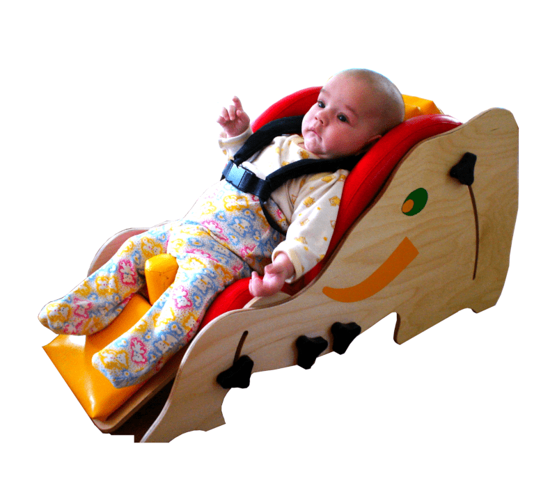 Реабилитационный эффект: Адаптация ребенка к полусидячему положению с удержанием головы, социальная адаптация.